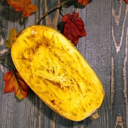 La chair cuite et grattée avec une fourchette se détache en filaments comme des spaghettis, d'où son nom.